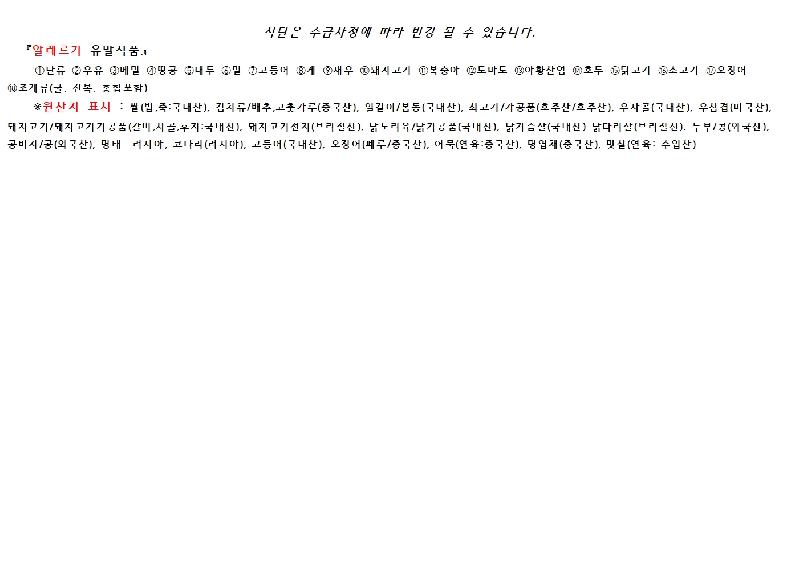 2024년 12월 3일 ~ 12월 9일 식단표