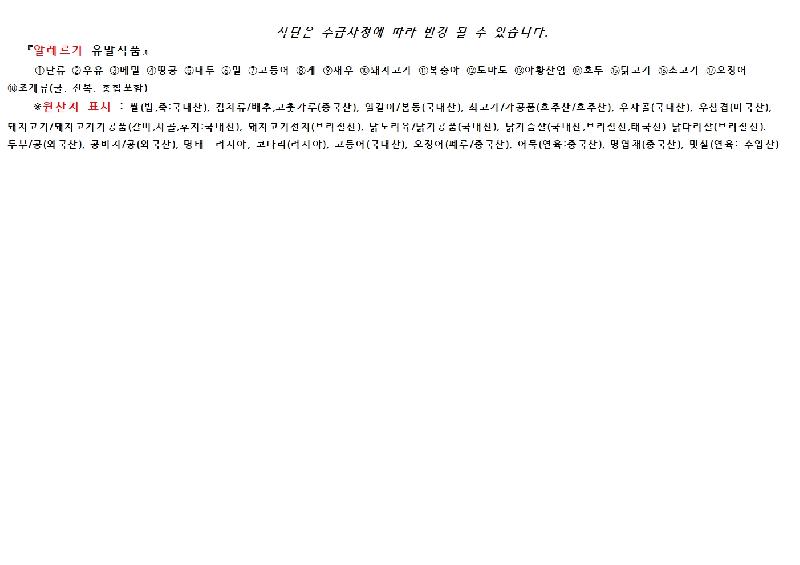 2024년 12월 24일 ~ 12월 30일 식단표