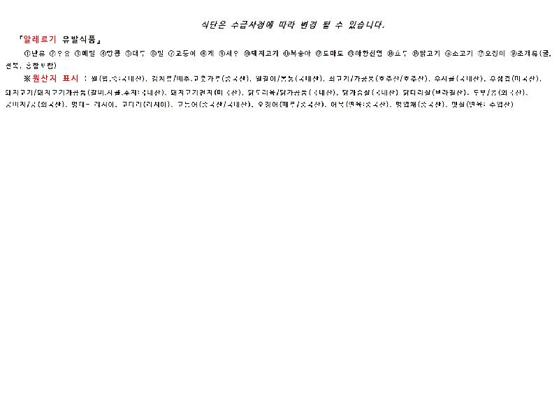 2025년 12월 30일 ~ 2026년 1월 5일 식단표