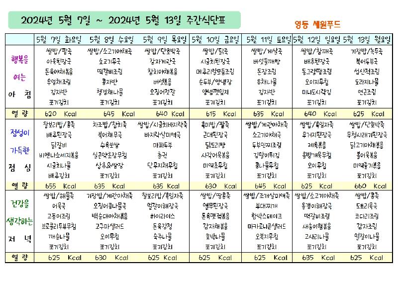 2024년 5월 7일 ~ 5월 13일 식단표